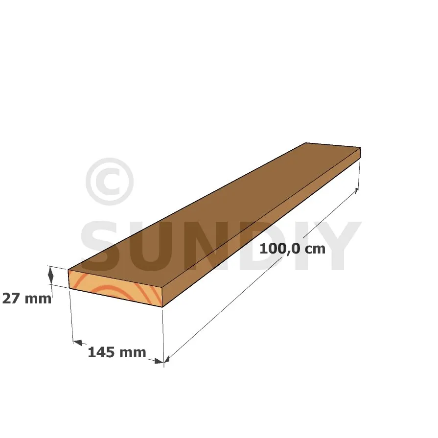 Douglas wood slat - thickness: 27mm, width: 100mm, length: 1.00m - Straight edges - Réf. SND-L-27-1000