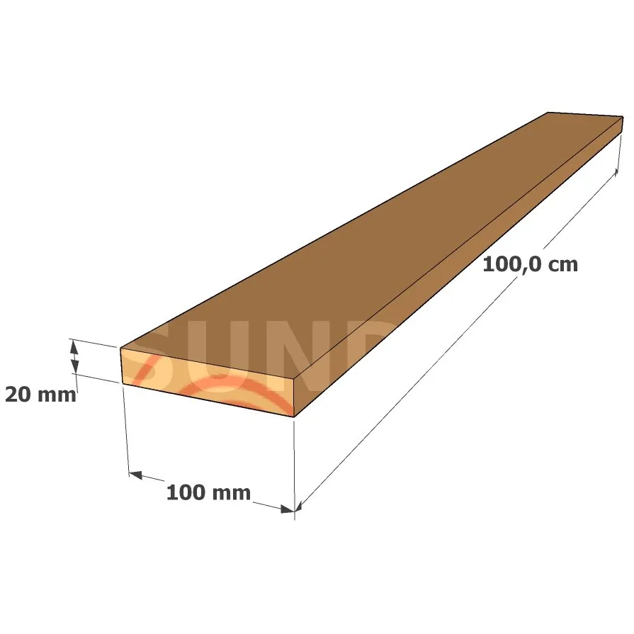 Douglas wood slat - thickness: 20mm, width: 100mm, length: 1.00m - Straight edges - Réf. SND-L-20-1000