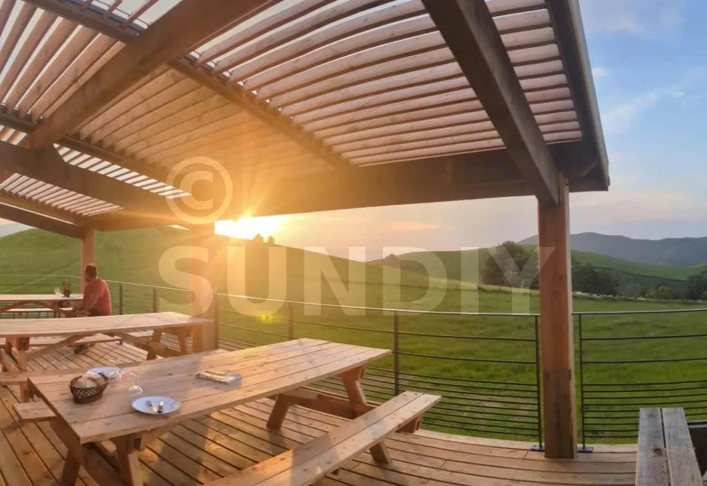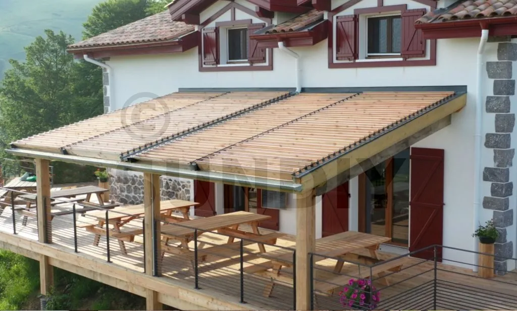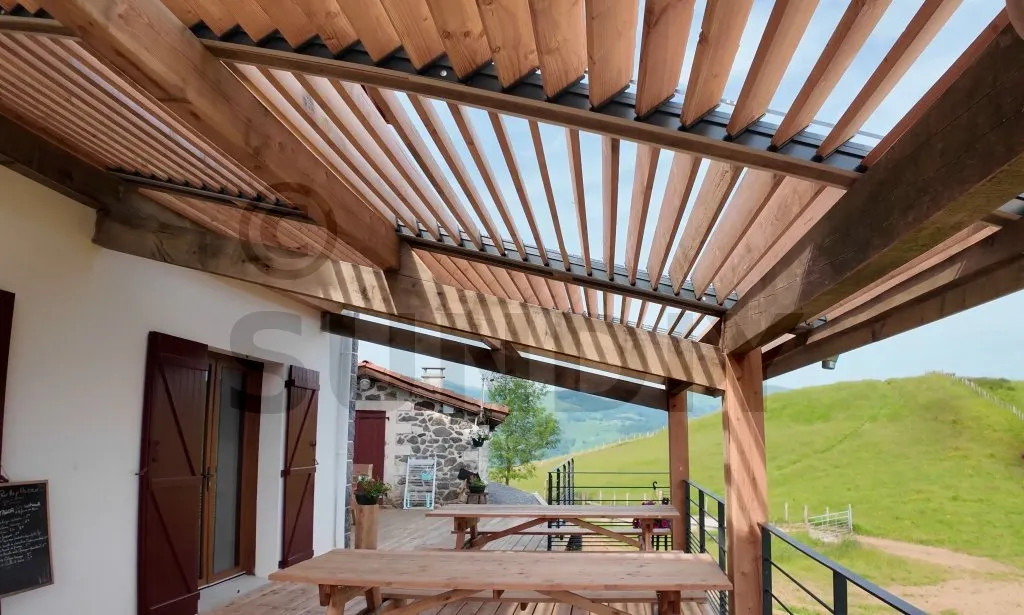 J'ai construit moi-même ma terrasse et ma pergola. Pour rester dans l'esprit authentique et chaleureux de ma bâtisse, j'ai choisi une structure entièrement en bois. Afin de garantir l'étanchéité, j'ai conçu ma pergola bioclimatique avec un toit en pente. J'ai opté pour une pergola à lames orientables avec une activation motorisée. Comme j'avais trois travées, j'ai installé deux vérins.Je tiens à exprimer mes remerciements à l'équipe SUNDIY pour la qualité de leurs produits ainsi que pour leur service remarquable. Grâce à SUNDIY, je peux offrir à mes clients une terrasse praticable toute l'année !