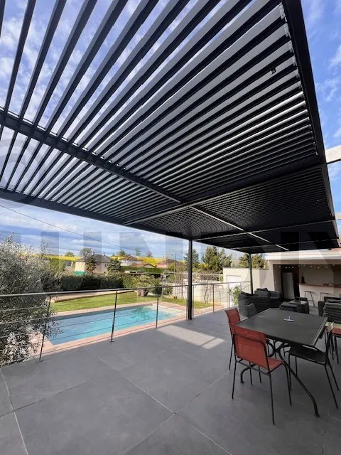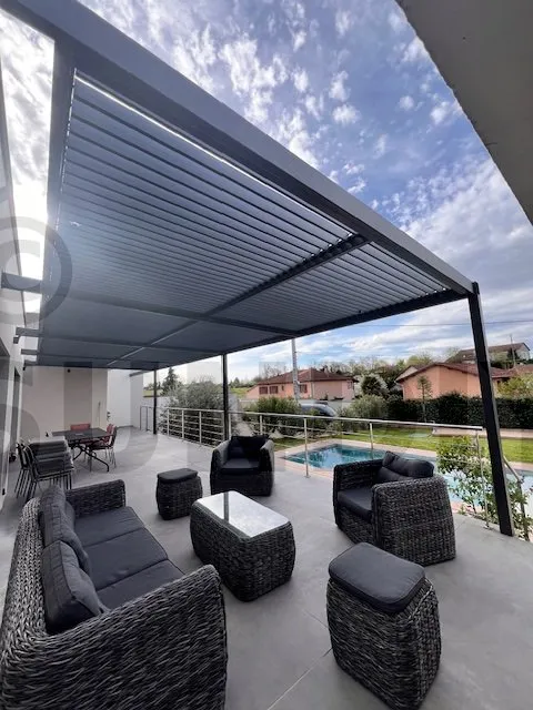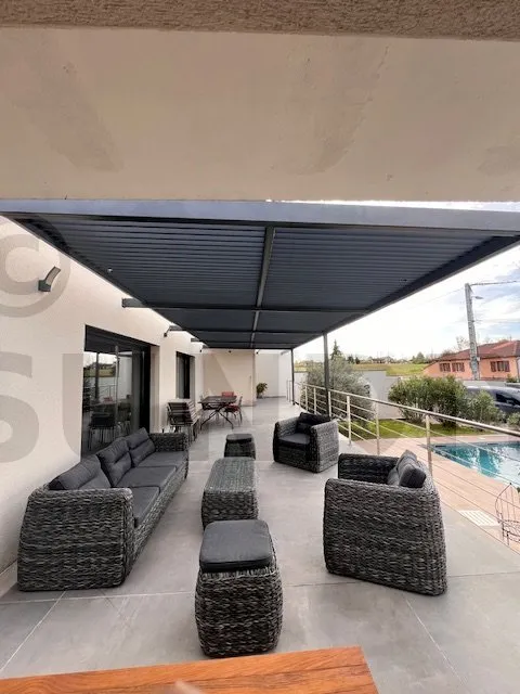 Nous sommes heureux d’avoir pu accompagner notre client à la conception de son projet. Il n’a pas eu besoin d’étude pour le réaliser puisque la structure a déjà été posée. Nous lui avons seulement vendu nos mécanismes et nos lames aluminium SUNDIY (noté que nous ne faisions pas de structure en alu).
