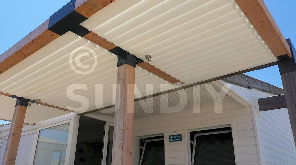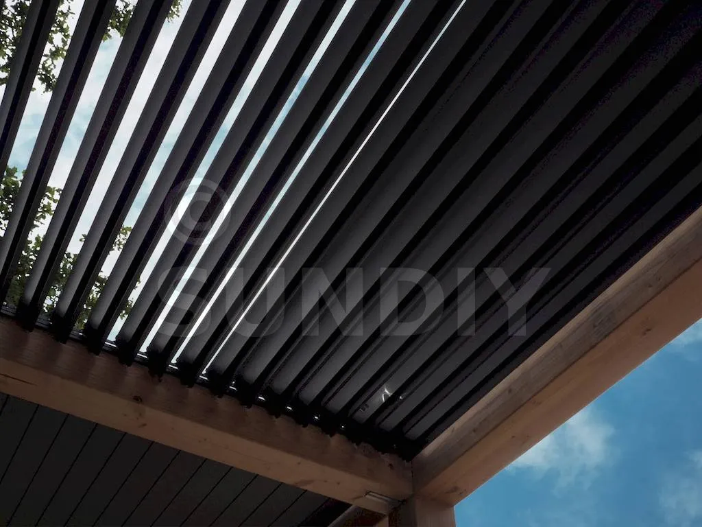 Les systèmes SUNDIY étant modulables, il est possible de mixer librement les matériaux selon vos envies et la fonction de chaque zone (toiture, brise-vue, volet, claustra…).