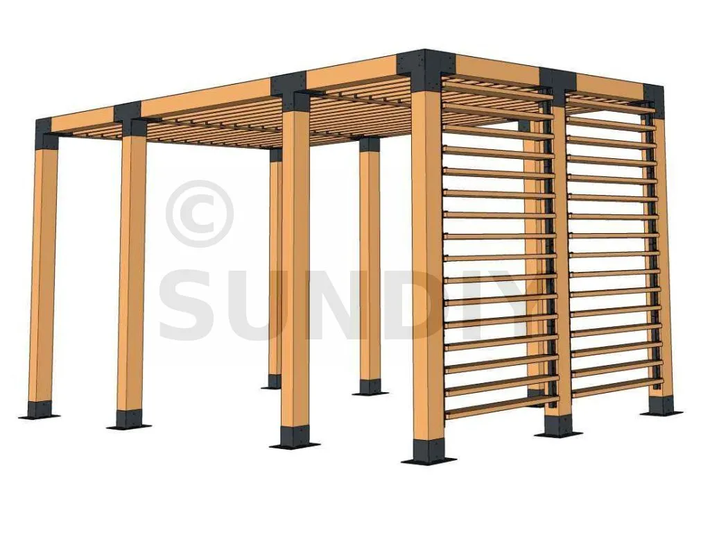 - Poteaux en bois de 12x12 lamellé-collé.