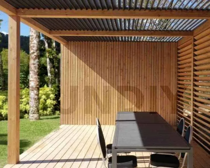 Les averses tropicales en Martinique peuvent être violentes. Avec nos pergolas en aluminium et bois, vous bénéficiez d’une structure robuste capable de résister aux intempéries. Les lames orientables permettent également de gérer efficacement l’écoulement de l’eau, évitant ainsi toute accumulation pouvant endommager votre mobilier de jardin.