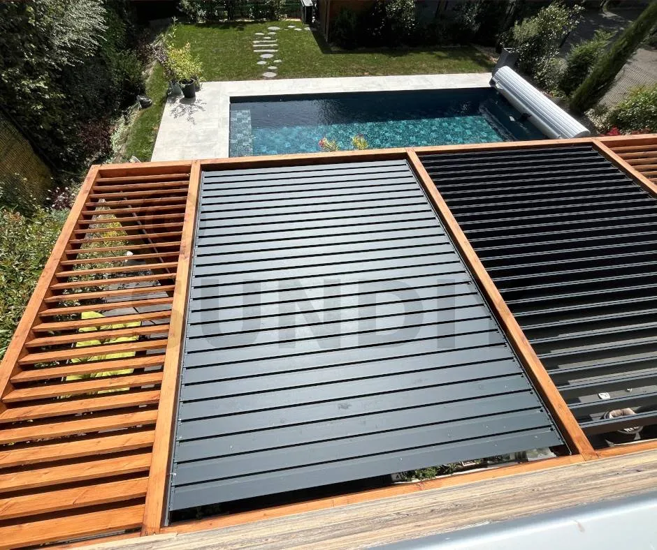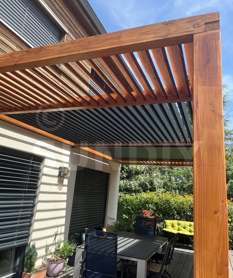 Le kit SUNDIY m'a permis de réaliser moi-même ce projet, et je suis ravi du résultat ! J'ai opté pour des lames en aluminium gris anthracite au centre et des lames en bois fixes aux extrémités, créant ainsi un contraste harmonieux. Le montage a été simple, et les matériaux sont de très bonne qualité.